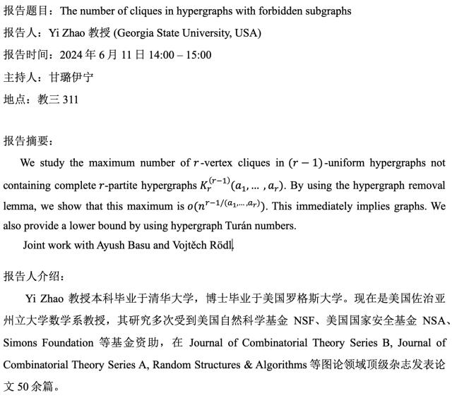 系统科学与重大信息网络学术论坛第十六期-The number of cliques in hypergraphs with forbidden subgraphs