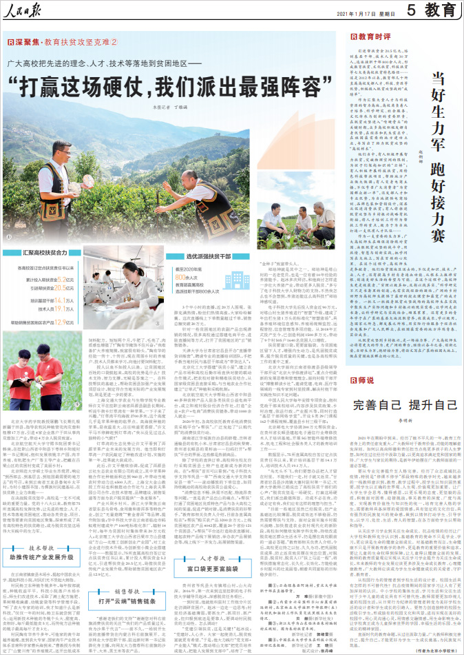 ¡¶ÈËÃñÈÕ±¨¡·2021Äê1ÔÂ17ÈÕ¡°Éî¾Û½¹¡¤½ÌÓý·öƶ¹¥¼á¿ËÄÑ¡±À¸Ä¿±¨µÀ£º